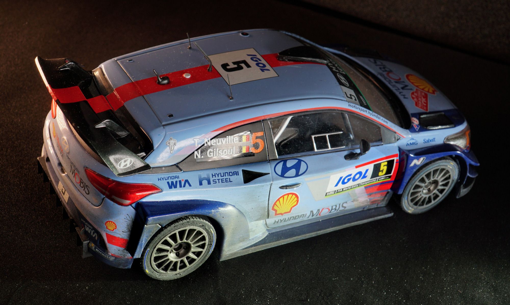 Ein großer Sieg der beiden Belgier Thierry Neuville und Copilot Nicolas Gilsoul. Wegen der trockenen Rallye Korsika 2017 hier eine zurückhaltende nachträgliche Bearbeitung... Die Basis ist hier einmal mehr ein tolles Modell von IXO in 1:18.